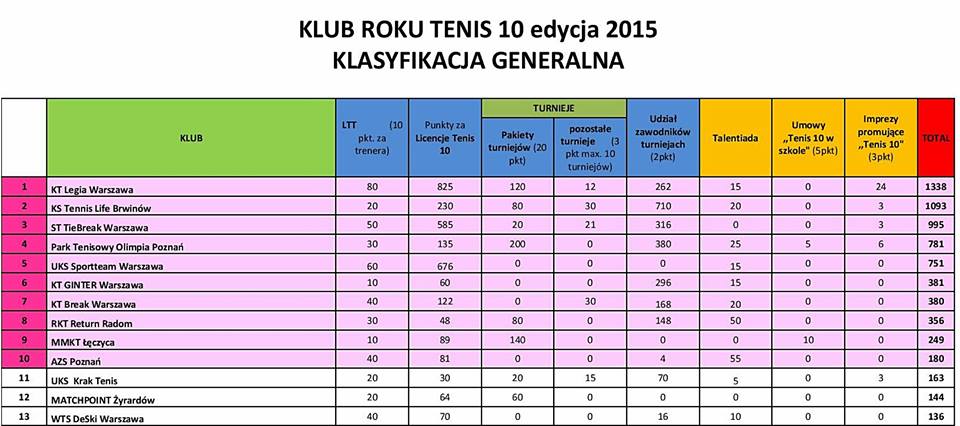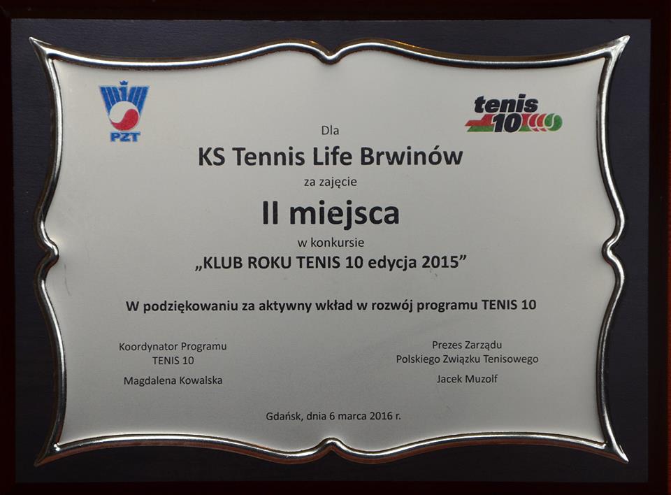 Drugie miejsce w konkursie Klub Roku Tenis10 2015 to ogromy sukces i powtórzenie wyniku sprzed trzech lat.
